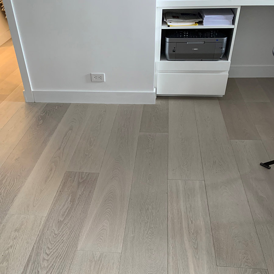 Moonstone is our interpretation of the natural beauty of the moon, with very mild tones of brown underneath the light grey. The movement of the grain flows naturally like the planets and stars in the galaxy. This color is an interesting way of bringing the shine of the moon onto the hardwood floors that you are having installed.