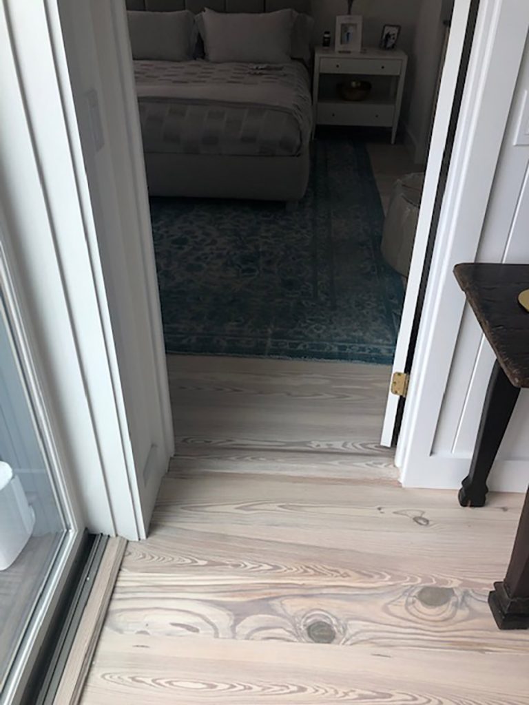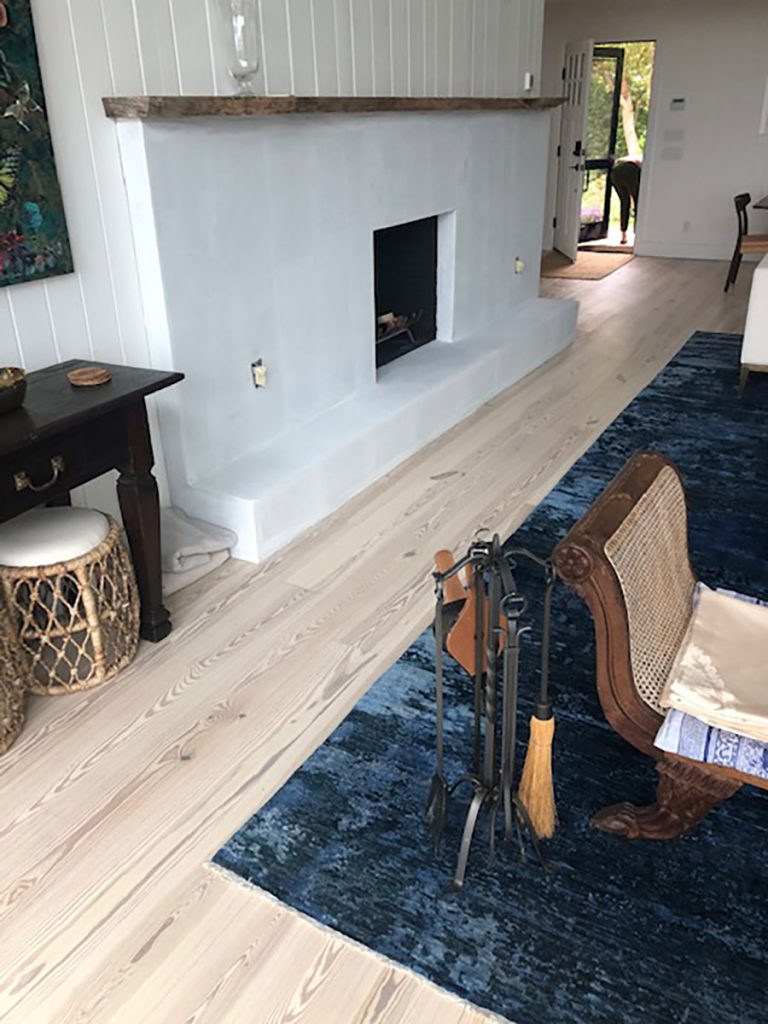 The hardwood flooring throughout this home was refinished using our Snowdrop color. The heart pine flooring that was already installed was matched to complete other areas within the home to create one unified look. Existing décor complements this color choice very well.