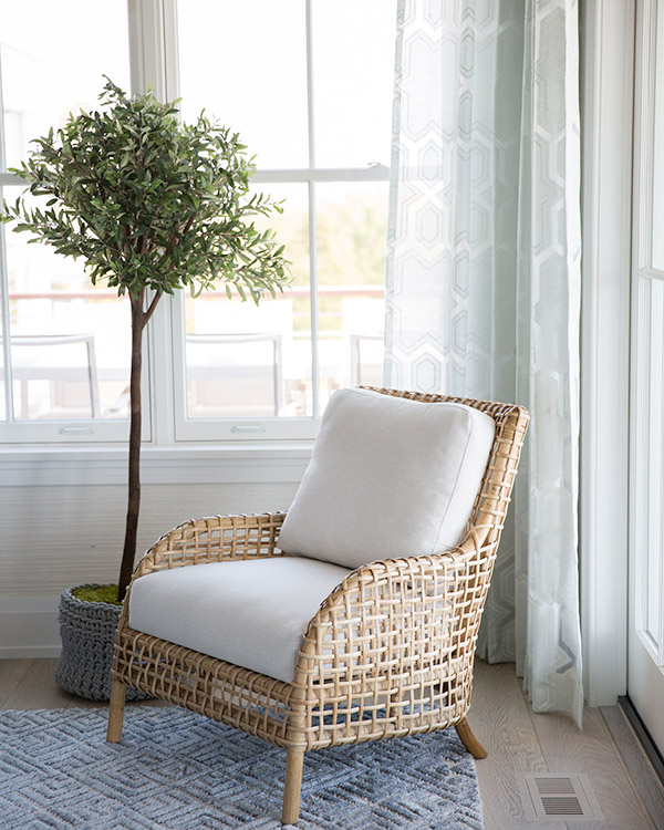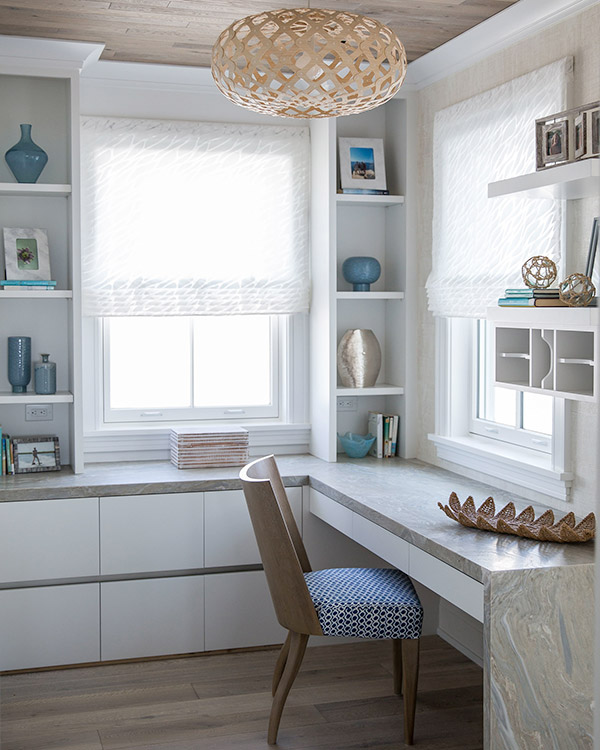 Michelle Wenitsky Interior Design created Reeds Hideaway, a beach house where you can almost feel the breeze and smell the fresh ocean air as soon as you take a step inside. The combination of blue hues and varying tones of tan are reminiscent of a vacation home in the Hamptons.