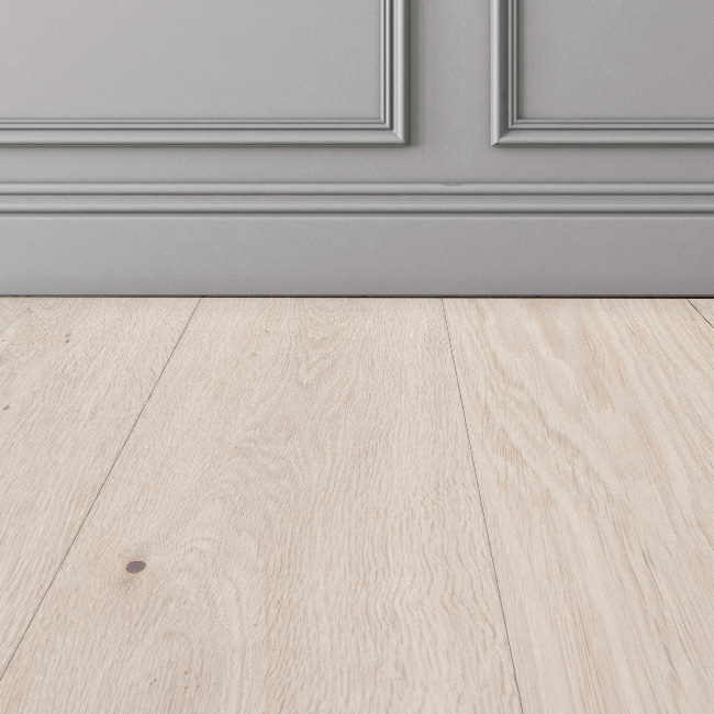 The light color is reminiscent of unfinished hardwood with an open and airy feel. Using this option on wide plank flooring will make any space feel even larger.